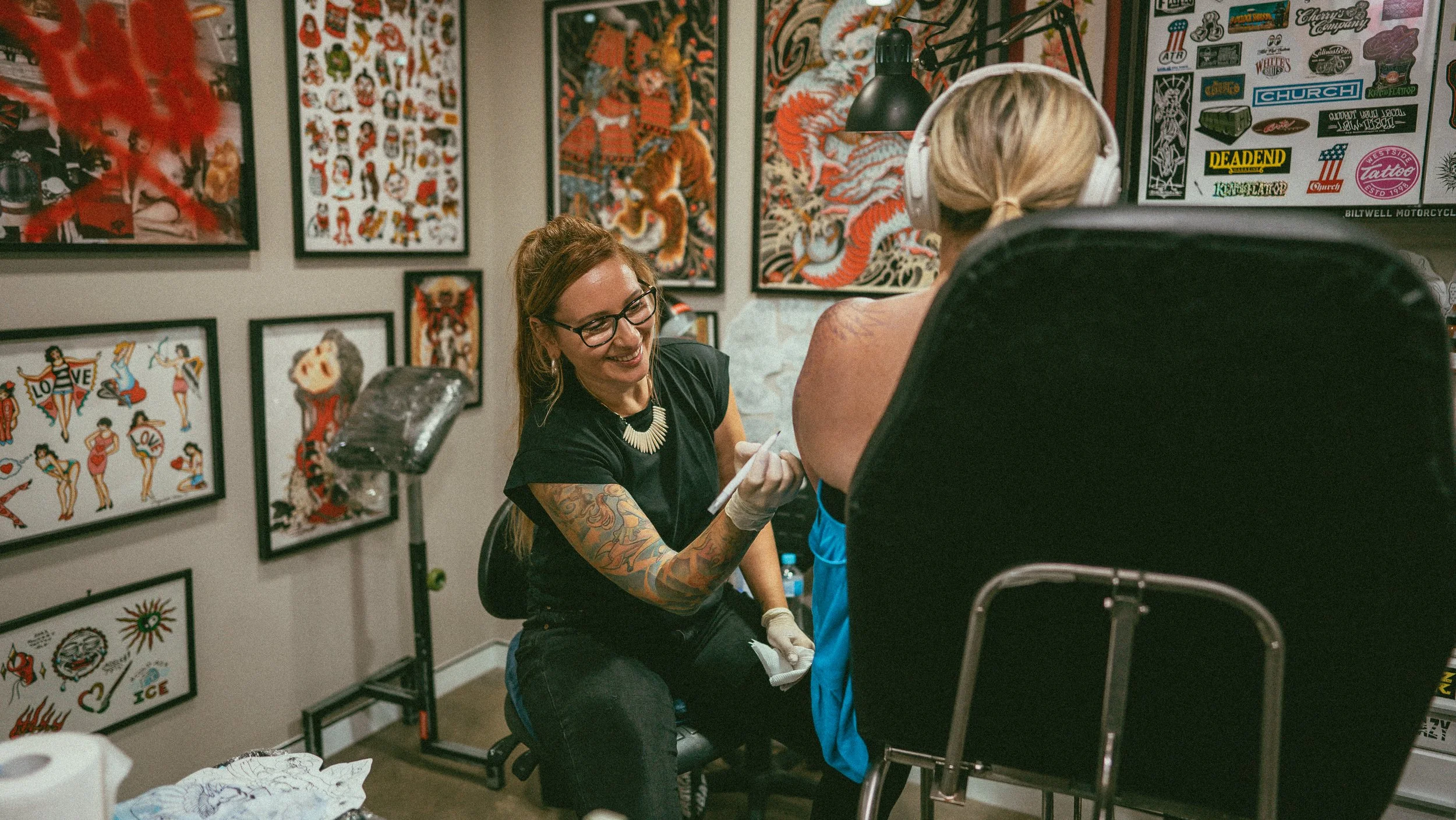 Ally started her tattoo apprenticeship in 2000 at the age of 16. She since worked in various studios in Australia and overseas, along side some great inspiring artists gaining experience in different styles of tattooing. She co-created Dangerzone Tattoo in Melbourne with her husband Craig where she focused on custom tattooing for her clients for over a decade. She found herself chasing the ocean sparkles on the beautiful Sunshine Coast, bringing her art to Foundry tattoo.